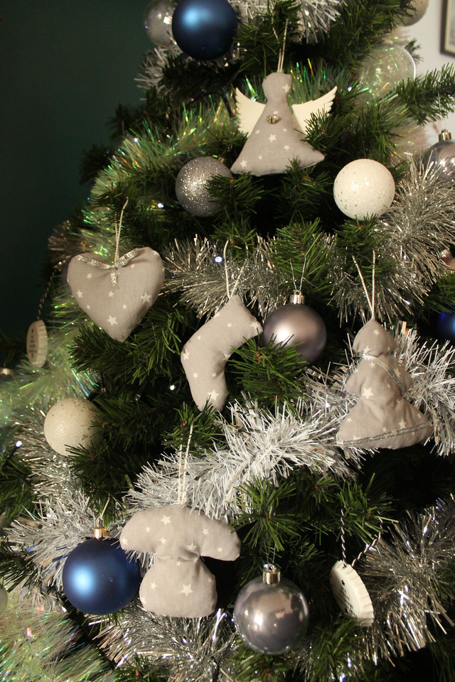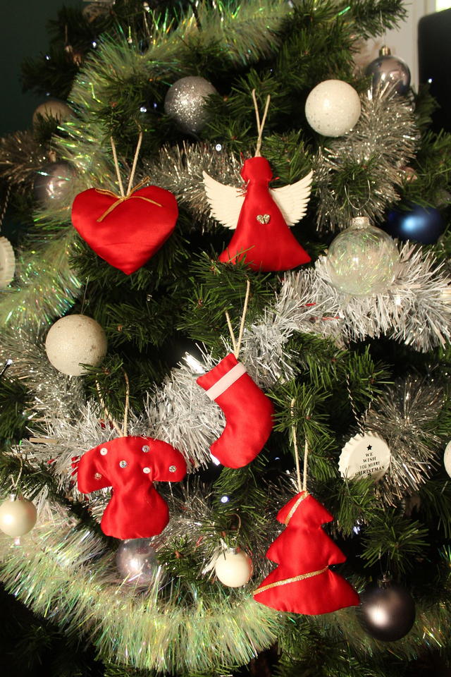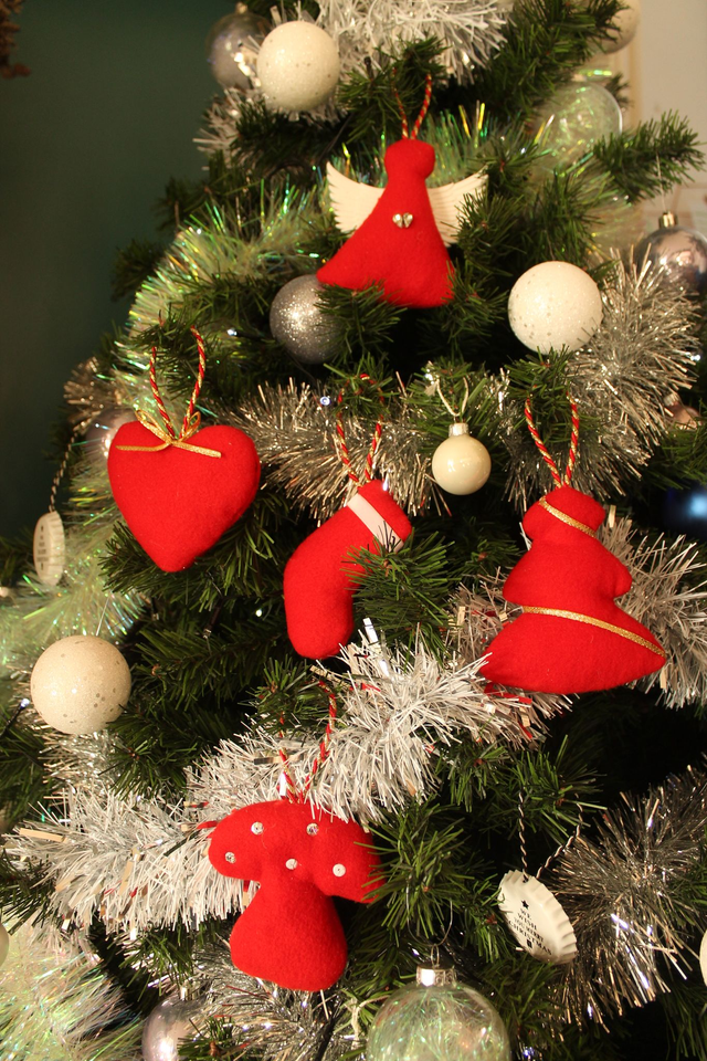Apportez une touche de charme et de durabilité à votre sapin avec ce lot de 5 décorations de Noël fabriquées en tissu recyclé et rembourrées pour un effet douillet et volumineux. Chaque suspension mesure environ 10 cm de hauteur.